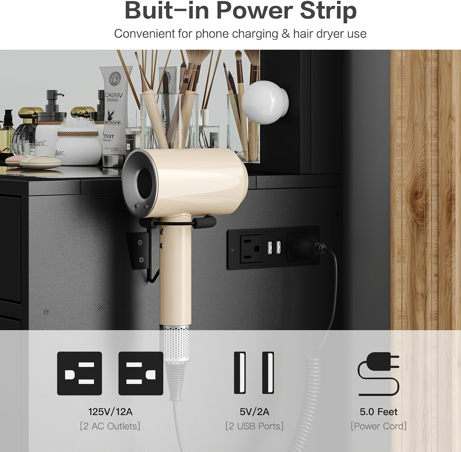 Transform your beauty routine with this comprehensive makeup vanity system designed for the discerning user. The centerpiece features an expansive HD mirror framed by 12 Hollywood-style LED bulbs offering three distinct color modes—warm, natural, and cool—with fully adjustable brightness to ensure flawless makeup application in any lighting condition. Organization meets functionality through eleven spacious metal sliding drawers, providing ample storage for cosmetics, accessories, and beauty tools while maintaining a streamlined bedroom aesthetic. The integrated charging station elevates convenience with two standard electrical outlets and two USB ports, enabling simultaneous charging of hair dryers, curling irons, smartphones, and tablets without cluttering your workspace. The contemporary design combines a rustic aesthetic with practical proportions, creating an elegant focal point that enhances any bedroom décor. The included cushioned vanity stool, crafted from premium flame-retardant materials, tucks completely beneath the table to maximize floor space. Engineered for stability and durability, this floor-mounted unit arrives fully assembled with comprehensive instructions and all necessary hardware, ensuring a straightforward setup process. An ideal investment for makeup enthusiasts, beauty professionals, and content creators seeking professional-grade lighting and organization in a single sophisticated piece