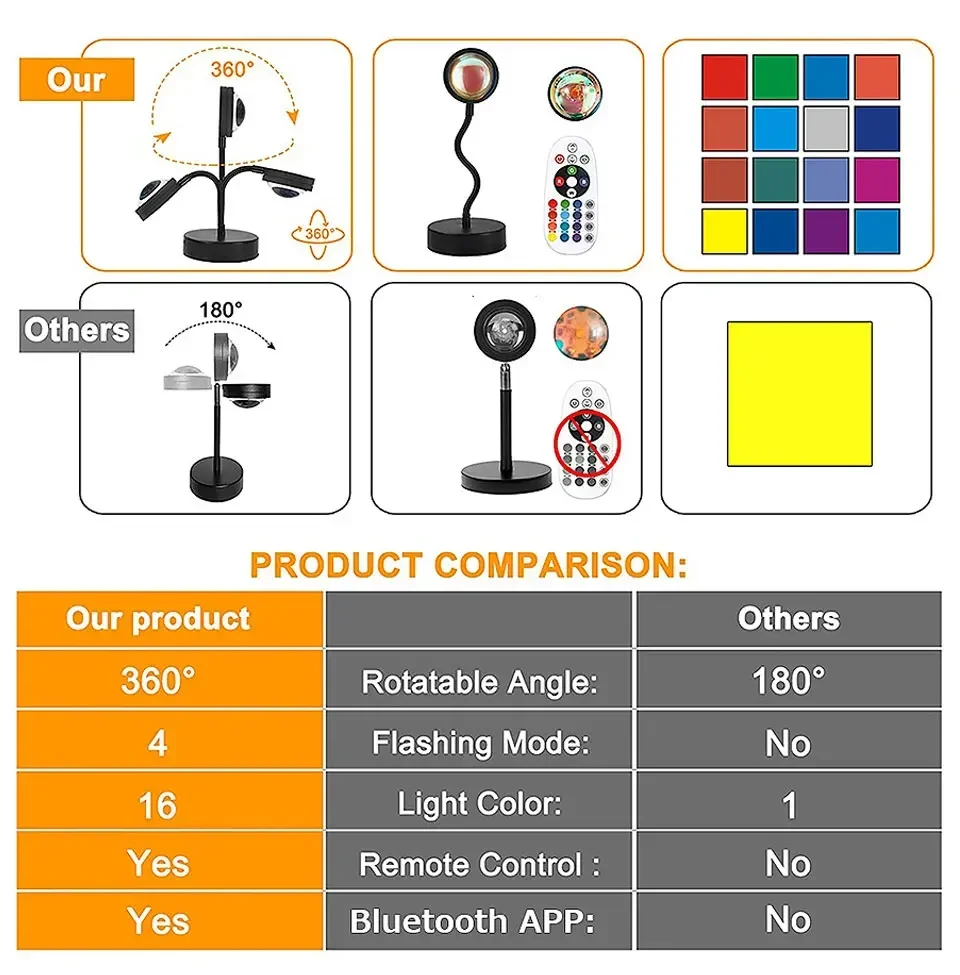LED Photography Light Sunset Background Fill Light Atmosphere Light 16-color Small Night Light 4 Modes Setting for Photography