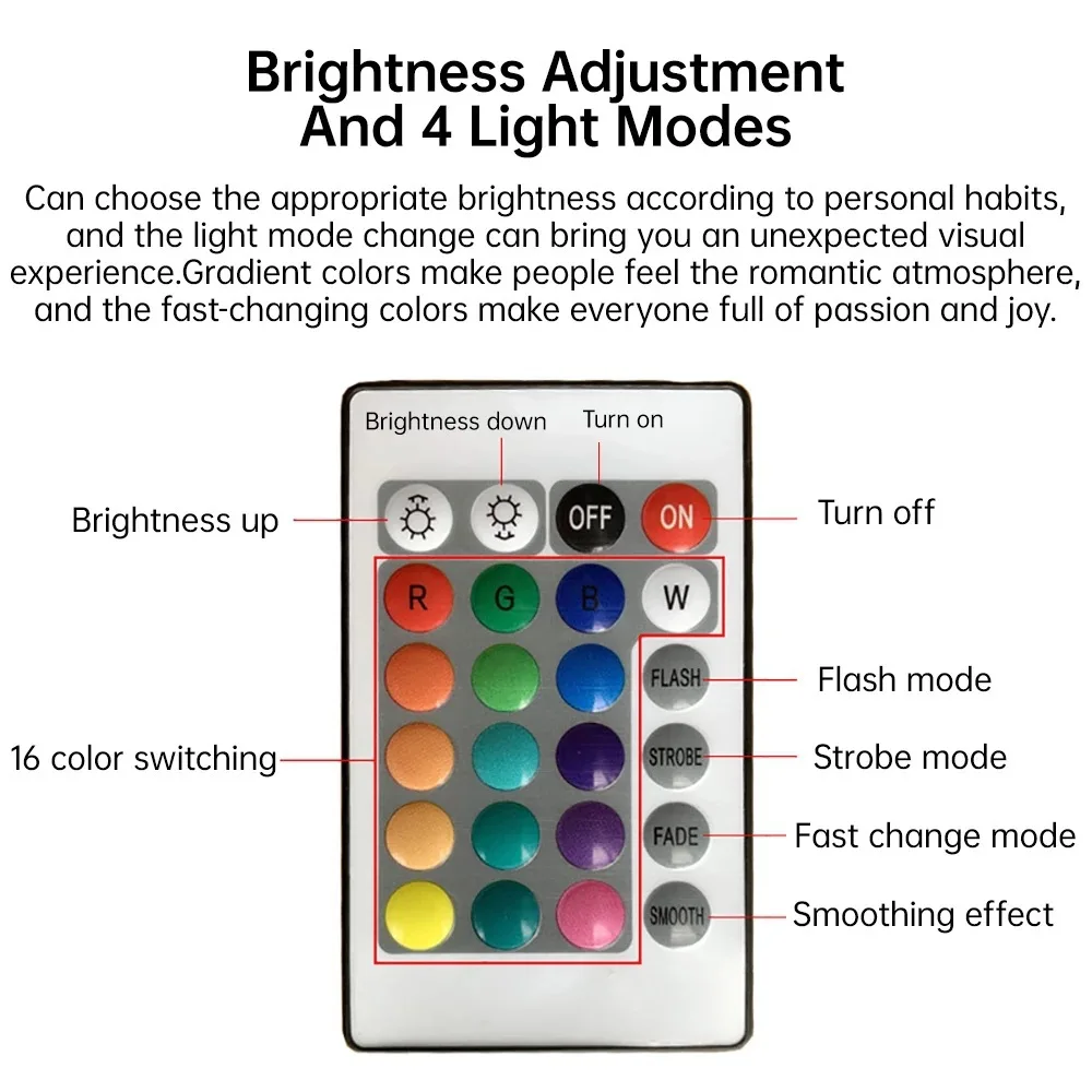 Transform your photography and ambiance with this versatile LED light system, engineered for both professional and personal use. Featuring 16 customizable colors and 4 distinct operating modes, this compact fixture adapts seamlessly to any creative vision—from sunset-inspired photography backdrops to atmospheric room lighting. The durable ABS plastic construction ensures reliable performance, while the included batteries and LED bulbs mean you're ready to use immediately. With a luminous flux range of 60-249 lumens, it delivers sophisticated illumination suitable for bedrooms, studies, foyers, and holiday displays. The self-contained design requires no complex installation, making it an elegant solution for photographers, content creators, and anyone seeking refined ambient lighting control.