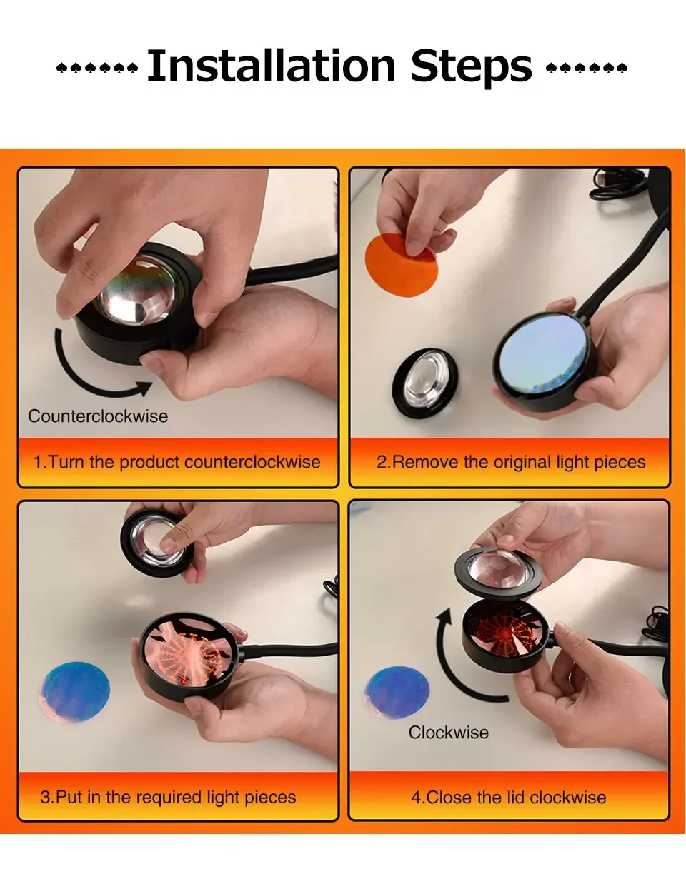 Colorful Light Effects: It can project large-sized, richly colored and smoothly transitioning circular light patterns, such as the dreamy purple-blue gradient or the warm orange-yellow gradient. It can also present the effect of overlapping and blending of light and shadow through the combination of multiple lamps, with a strong visual impact.