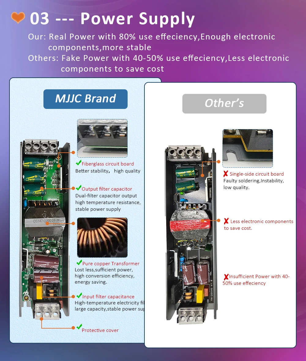 We used MJJC power supply,with high quality power supply, 100% enough power outputs,stable and long-life span.