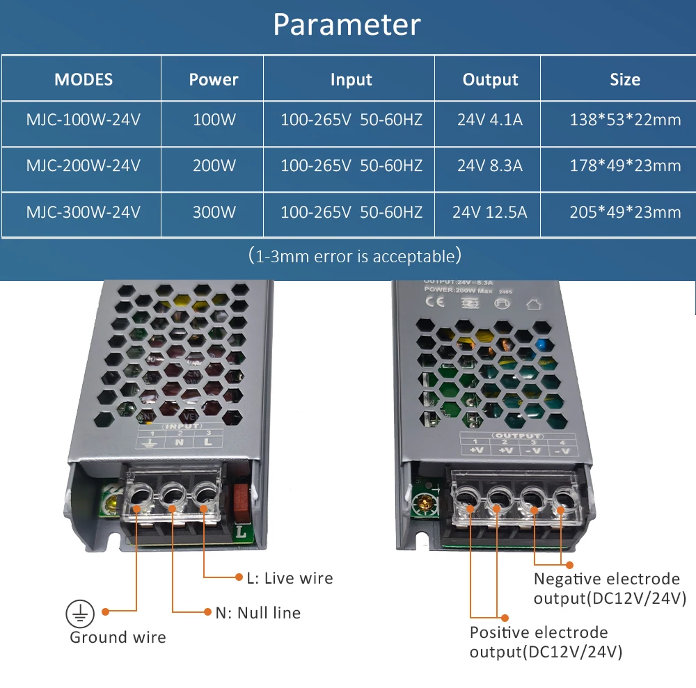1pc 300W power supply can used for 15M-20M (Max.120W-180W) 24V 480LEDs/m RGBIC Led Strip Lights.