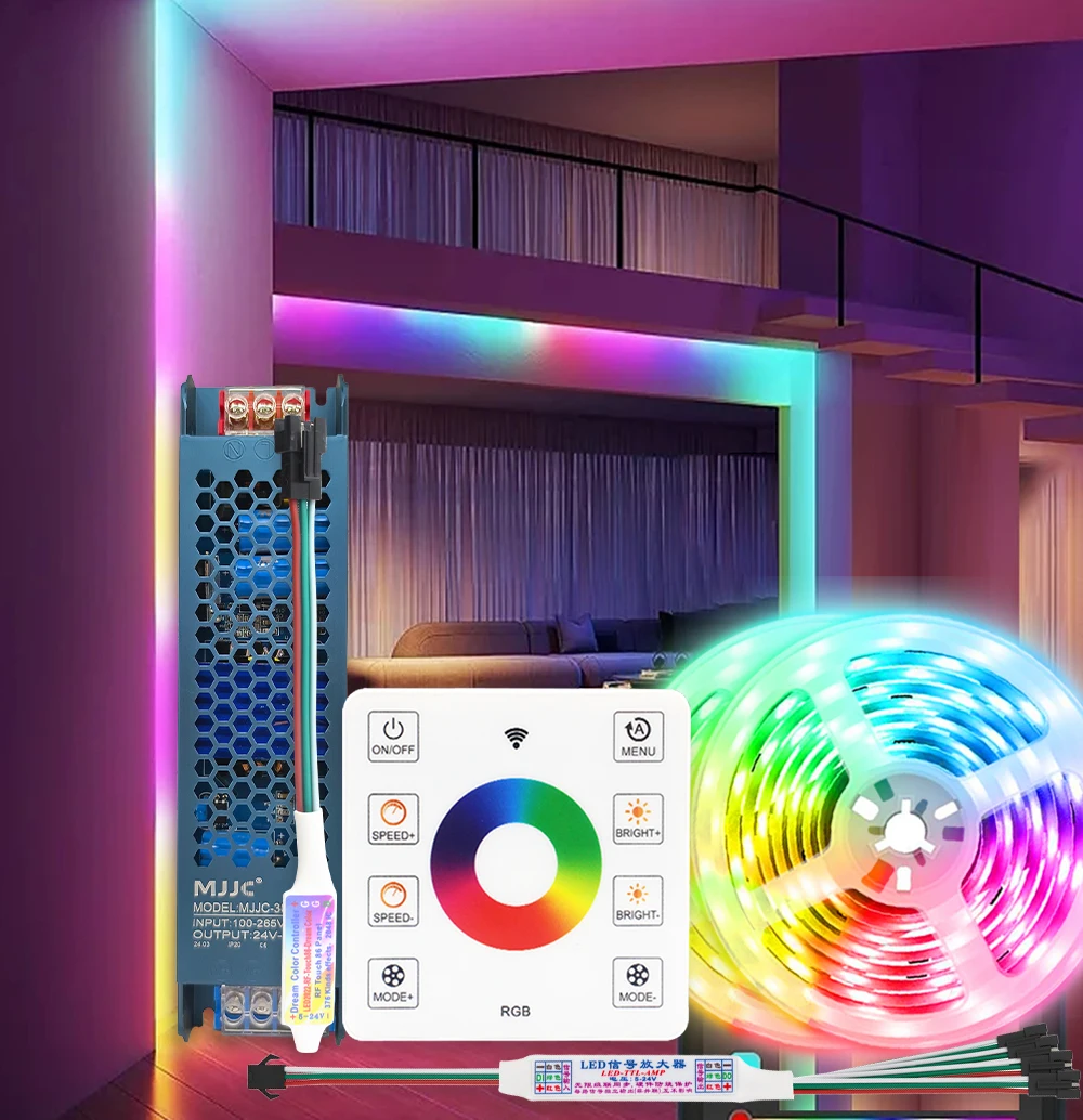 1pc 200W power supply can used for 10M-15M (Max.120W-180W) 24V 480LEDs/m RGBIC Led Strip Lights.